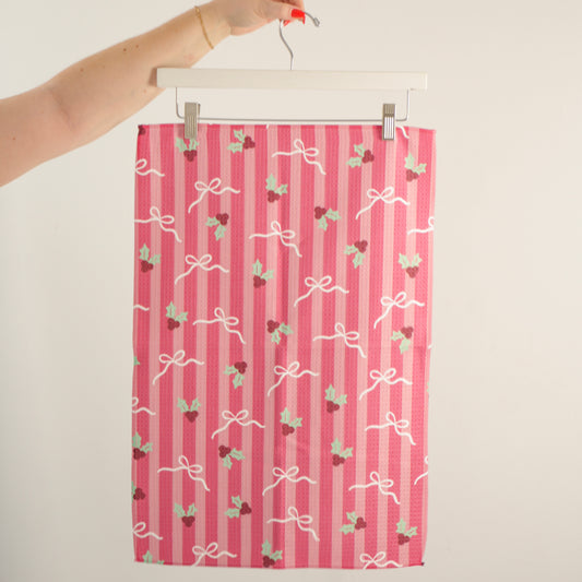 Bow Stripe Waffle Knit Towel