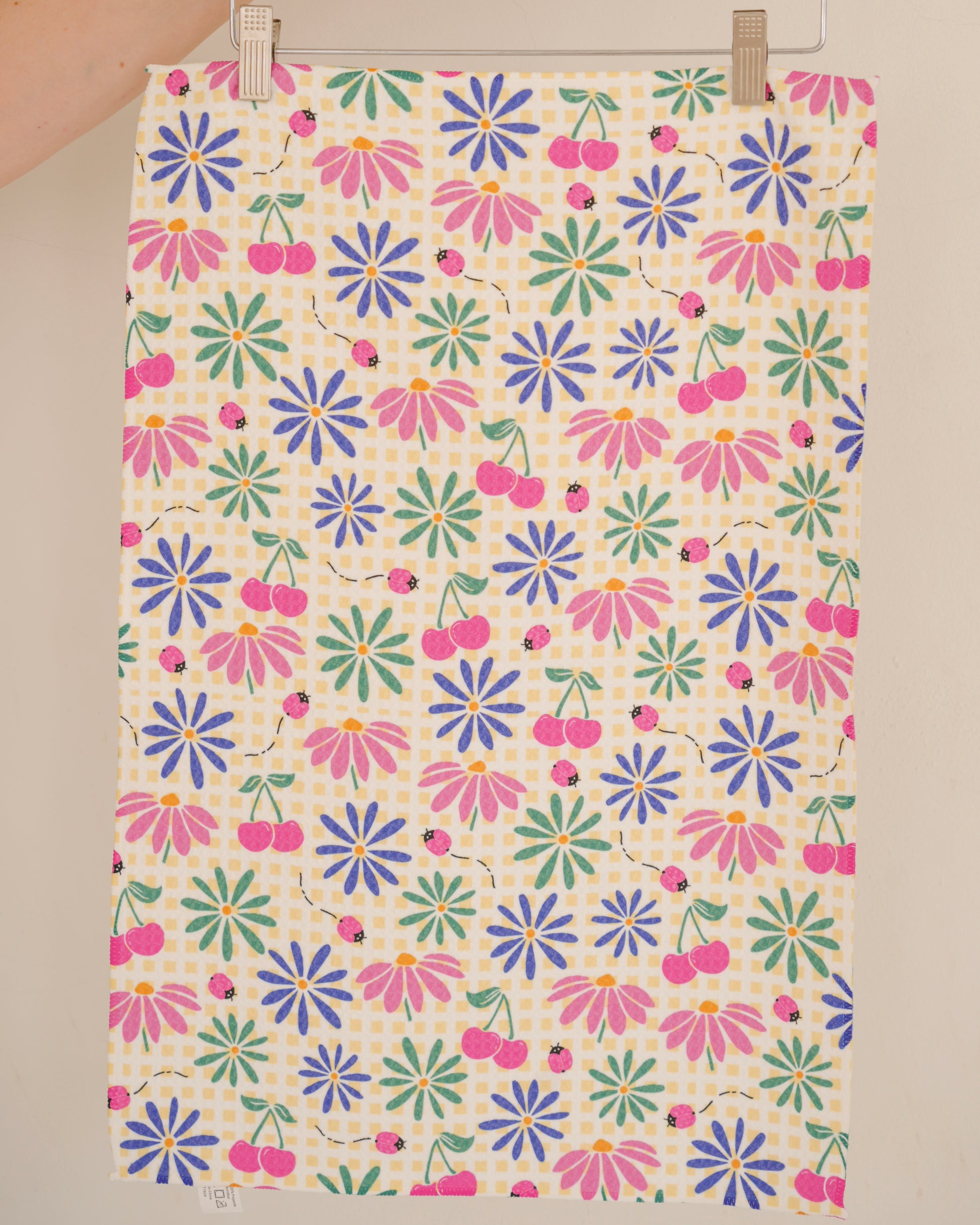 The waffle towels measure 16x24” and have a waffle weave microfiber texture. They are a Woven Polyester/Polyamide Blend Microfiber and feature original artwork.