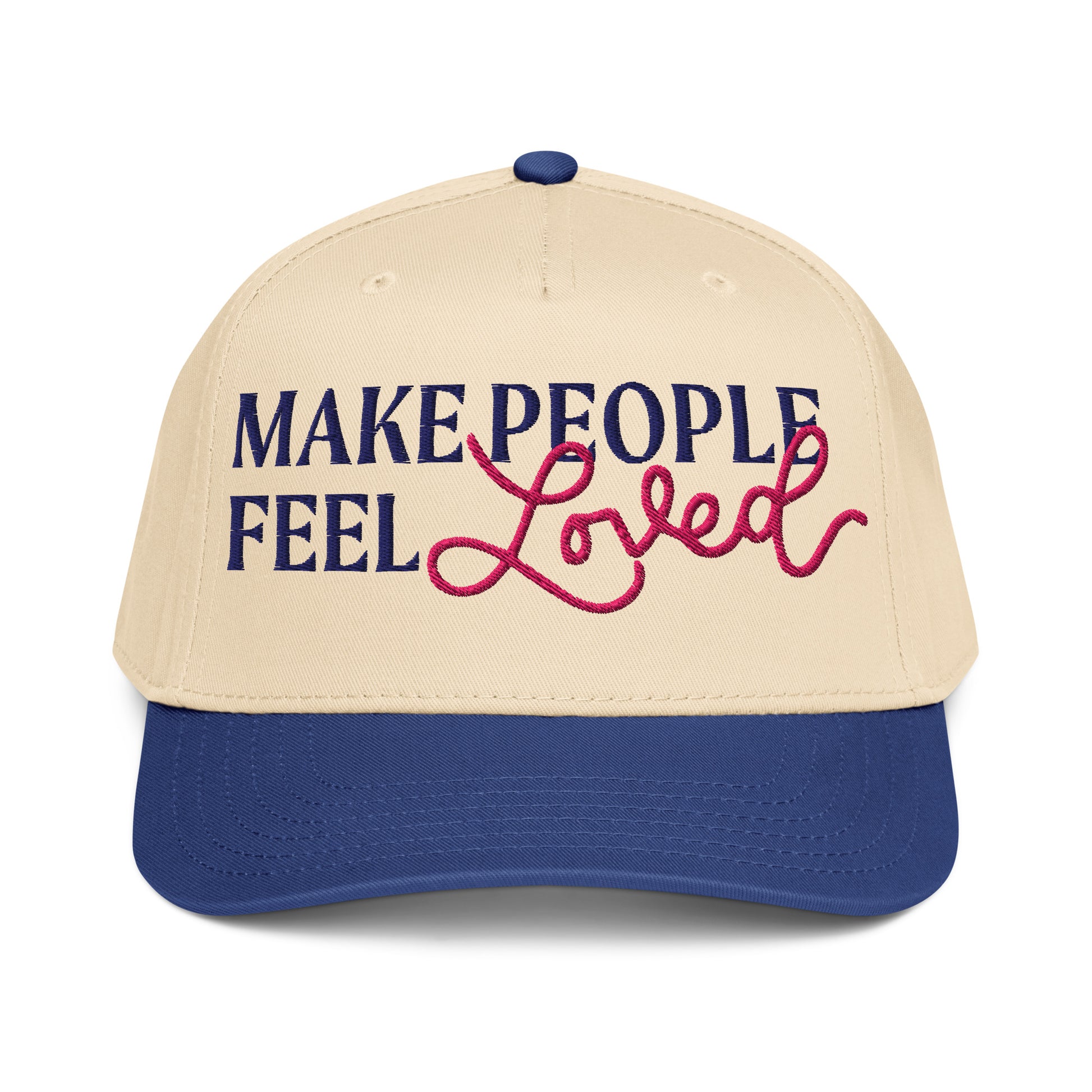 A bestselling design now on a cute hat! The hat is an Otto Five Panel Mid-Profile Baseball Cap with a canvas body and a blue bill.