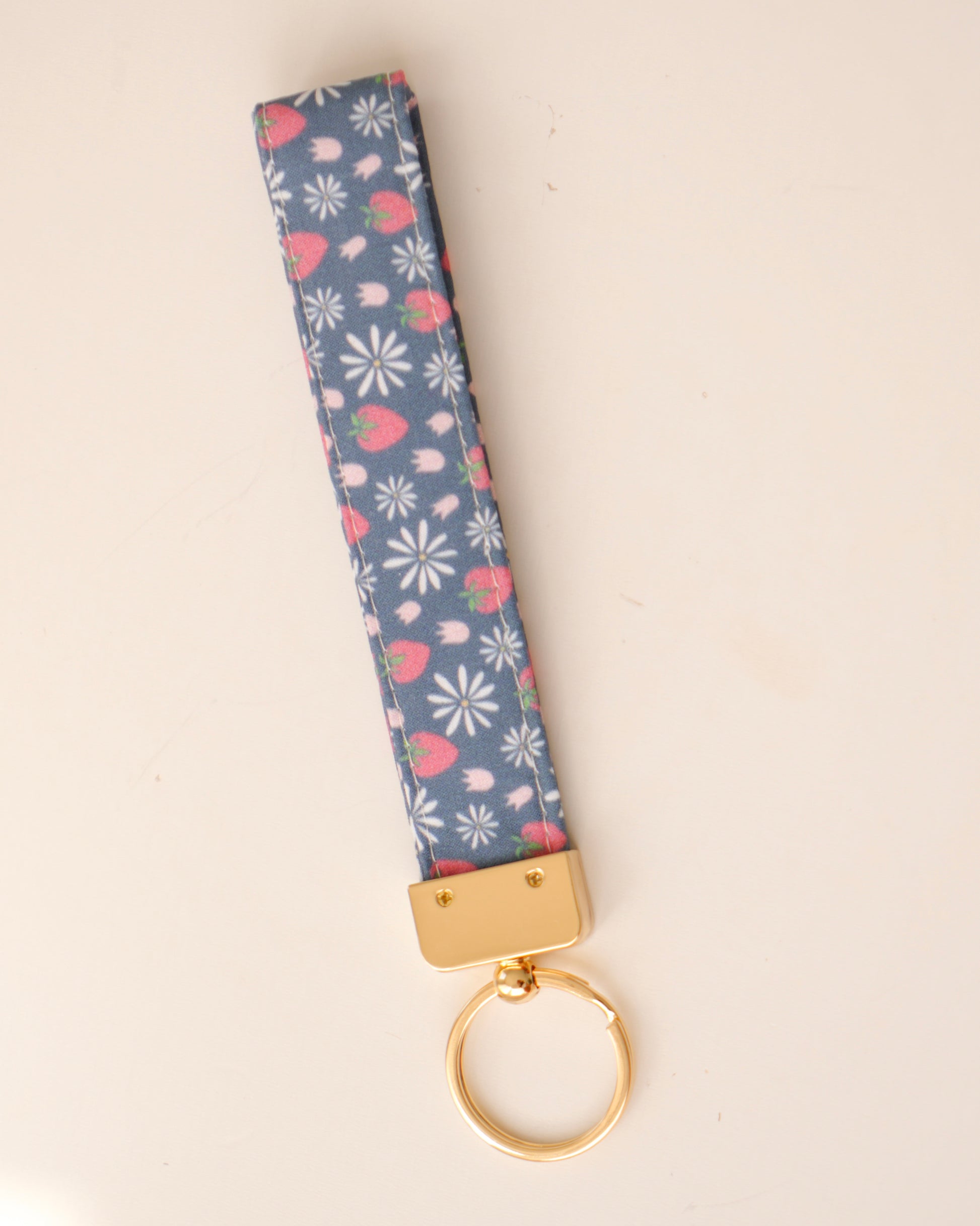 In another collaboration with Alex of The Pon Shop, we are bringing you these cute key fob wristlets! The fabric was designed by Kelsey and Alex turned it into this adorable key fob wristlet that measures approximately 6" by 1" wide. The gold hardware has a key ring where you can your keys.