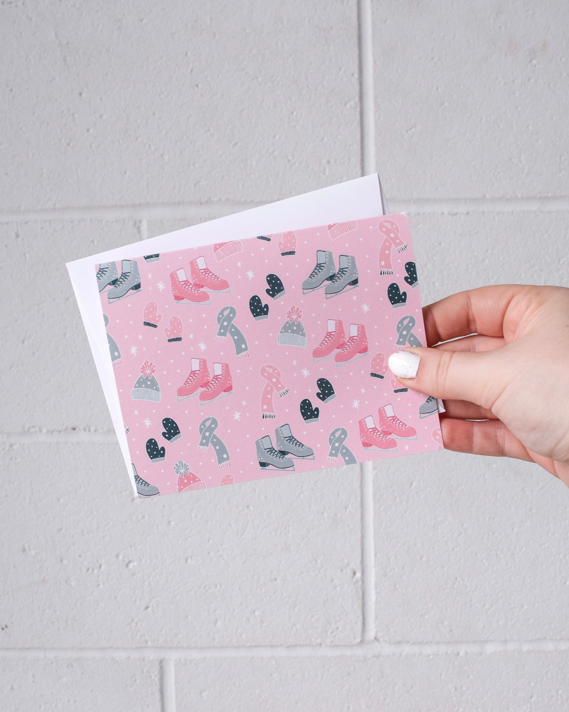 This set of 6 cards features a whimsical, pink, winter wonderland pattern. They are blank on the inside so you can write your personalized messages and send it off with the included blush envelope. Measures 4.25x5.5 when folded and printed on sturdy 110 Smooth Ultra White paper.